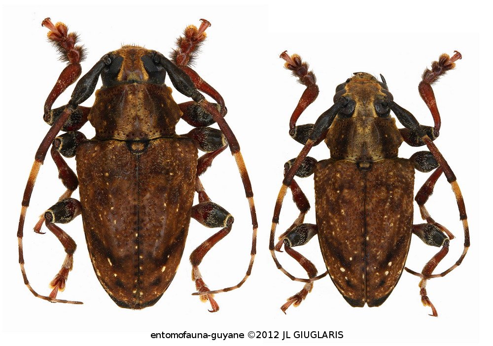 Accueil / Classification organisée et hiérarchisée. / CERAMBYCIDAE Latreille, 1802 / LAMIINAE Latreille, 1825 / ACANTHODERINI Thomson, 1860 / ACANTHODERINI Thomson, 1860 / Symperasmus thoracicus White, 1855 ♂ & ♀