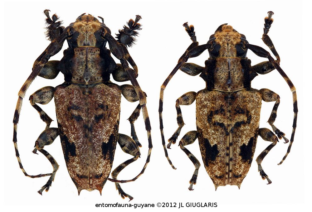 Accueil / Classification organisée et hiérarchisée. / CERAMBYCIDAE Latreille, 1802 / LAMIINAE Latreille, 1825 / ACANTHODERINI Thomson, 1860 / ACANTHODERINI Thomson, 1860 / Aegomorphus lateralis (Bates, 1861) ♂ & ♀