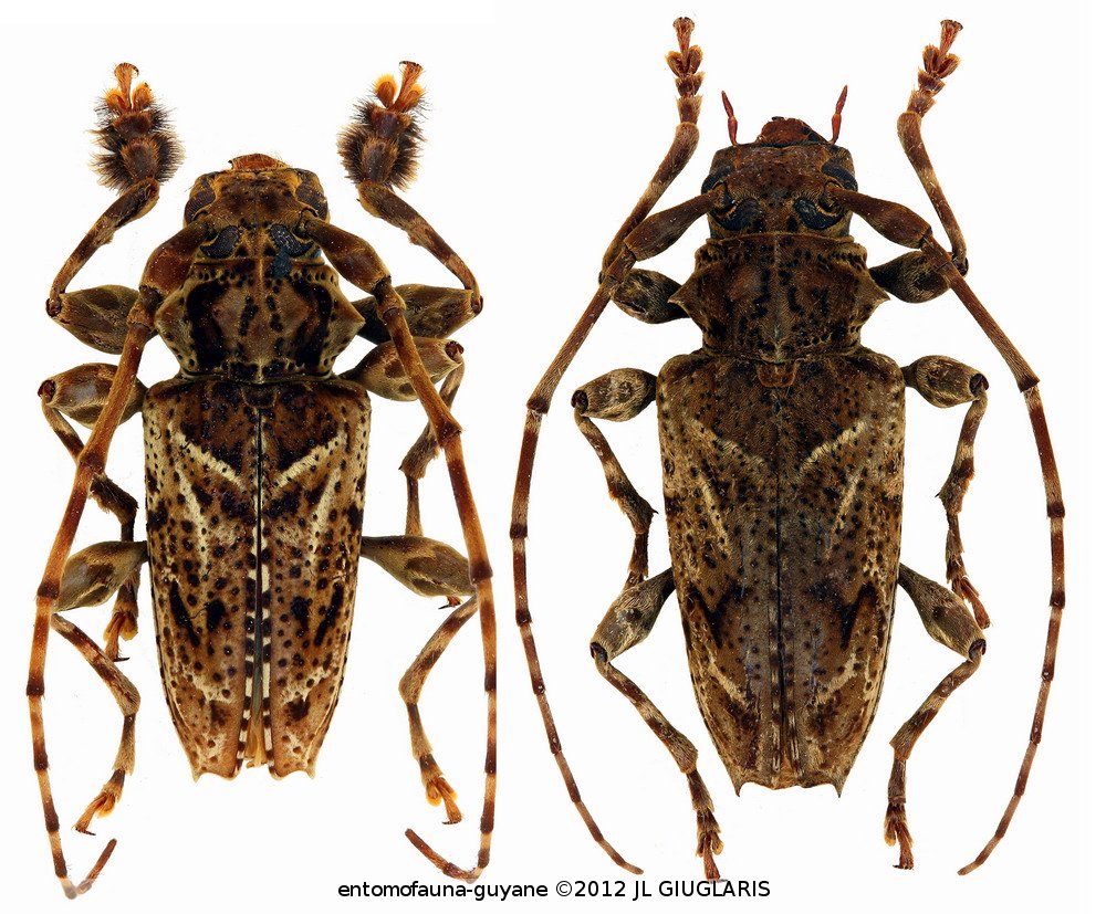 Accueil / Classification organisée et hiérarchisée. / CERAMBYCIDAE Latreille, 1802 / LAMIINAE Latreille, 1825 / ACANTHODERINI Thomson, 1860 / ACANTHODERINI Thomson, 1860 / Aegomorphus vetustus (Bates, 1880) ♂ & ♀