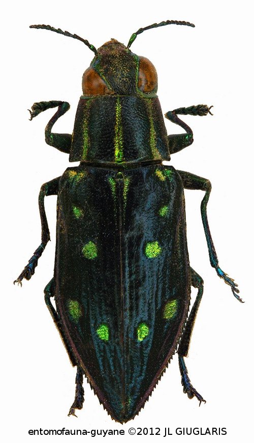 Accueil / Classification organisée et hiérarchisée. / BUPRESTIDAE Leach, 1815 / CHRYSOCHROINAE Lacordaire, 1857 / PARALEPTODEMINI Cobos, 1975 / Halecia octopunctata (Fabricius, 1801)