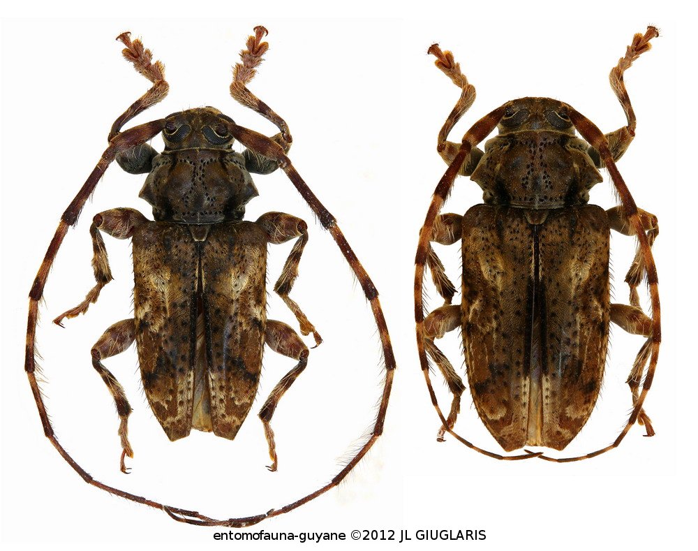 Accueil / Classification organisée et hiérarchisée. / CERAMBYCIDAE Latreille, 1802 / LAMIINAE Latreille, 1825 / ACANTHODERINI Thomson, 1860 / ACANTHODERINI Thomson, 1860 / Penaherreraus pradosiae (Tavakilian & Penaherrera-Leiva, 2003) ♂ & ♀