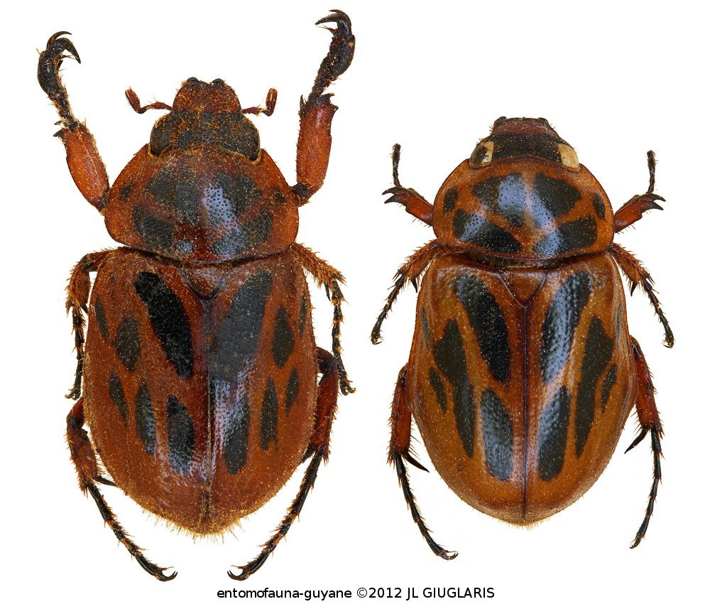 Accueil / Classification organisée et hiérarchisée. / SCARABAEOIDEA Latreille, 1802 / SCARABAEIDAE Latreille, 1802 / DYNASTINAE MacLeay, 1819 / CYCLOCEPHALINI Laporte, 1840 / Cyclocephala kuntzeniana Höhne, 1923 ♂ & ♀