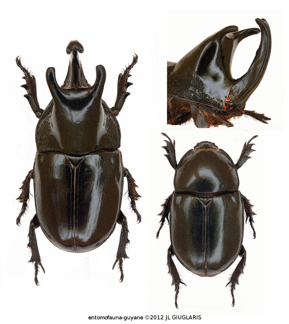 Accueil / Classification organisée et hiérarchisée. / SCARABAEOIDEA Latreille, 1802 / SCARABAEIDAE Latreille, 1802 / DYNASTINAE MacLeay, 1819 / ORYCTYNI Mulsant, 1842 / Megaceras jason (Fabricius, 1775) ♂ & ♀