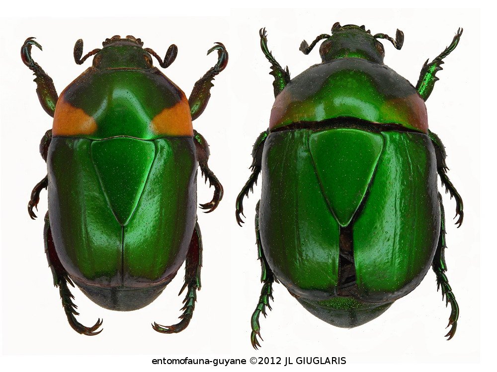 Accueil / Classification organisée et hiérarchisée. / SCARABAEOIDEA Latreille, 1802 / SCARABAEIDAE Latreille, 1802 / RUTELINAE MacLeay,1819 / RUTELINI MacLeay, 1819 / ANTICHEIRINA Lacordaire, 1856 / Macraspis lateralis (Olivier, 1789) ♂ & ♀