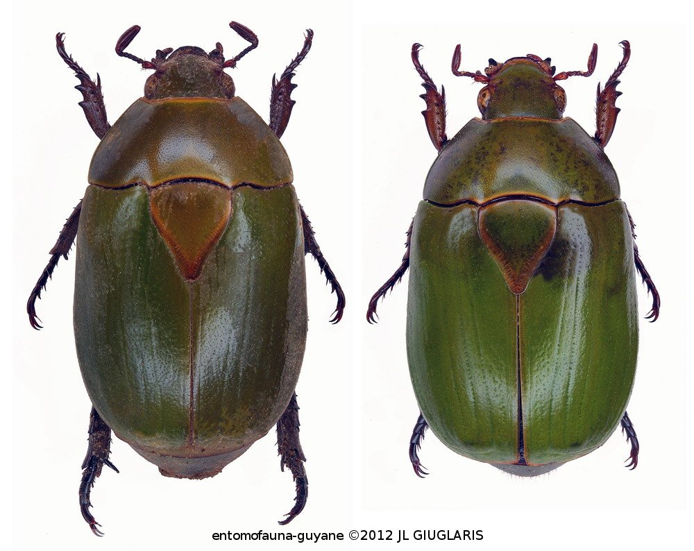 Accueil / Classification organisée et hiérarchisée. / SCARABAEOIDEA Latreille, 1802 / SCARABAEIDAE Latreille, 1802 / RUTELINAE MacLeay,1819 / RUTELINI MacLeay, 1819 / ANTICHEIRINA Lacordaire, 1856 / Dorysthetus virens virens (Drury,1773) ♂ & ♀