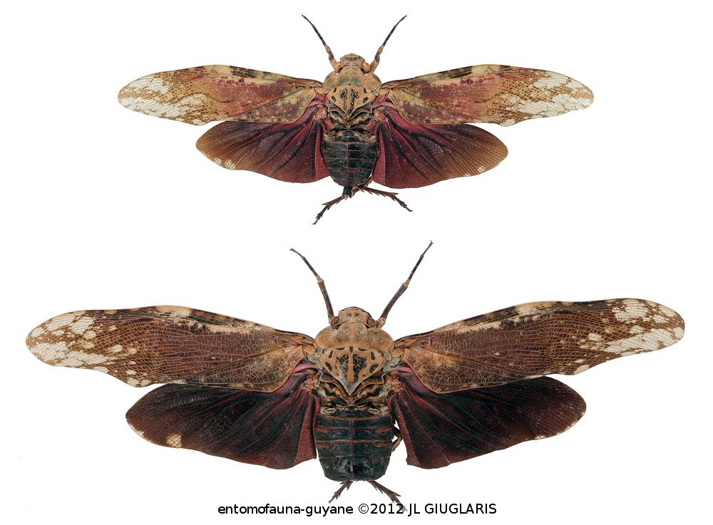 Accueil / Classification organisée et hiérarchisée. / HOMOPTERA Boisduval, 1829 / FULGORIDAE Latreille, 1807 / APHAENINAE Blanchard, 1847 / DILOBURINI Metcalf, 1938 / Aracynthus loicmatilei Bourgoin & Soulier-Perkins, 2001 ♂ & ♀