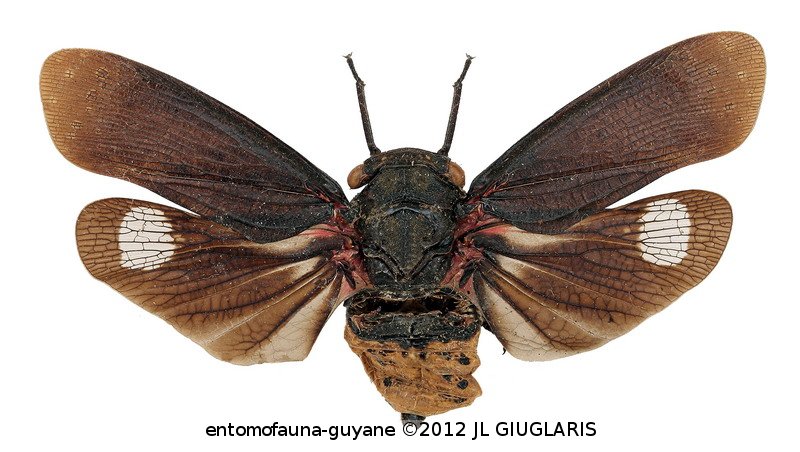 Accueil / Classification organisée et hiérarchisée. / HOMOPTERA Boisduval, 1829 / FULGORIDAE Latreille, 1807 / LYSTRINAE Spinola, 1839 / PARALYSTRINI Metcalf, 1938 / Acraephia perspicillata (Fabricius, 1781)
