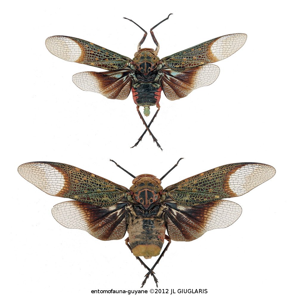 Accueil / Classification organisée et hiérarchisée. / HOMOPTERA Boisduval, 1829 / FULGORIDAE Latreille, 1807 / LYSTRINAE Spinola, 1839 / POIOCERINI Metcalf, 1938 / Scaralis picta (Germar, 1830) ♂ & ♀
