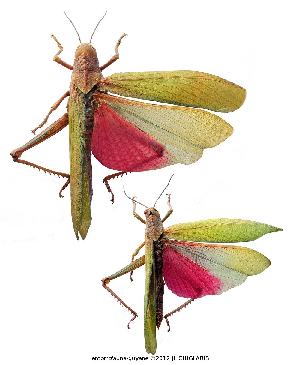 Accueil / Classification organisée et hiérarchisée. / ORTHOPTERA Latreille, 1793 / CAELIFERA Ander, 1936 / ROMALEIDAE Brunner von Wattenwyl, 1893 / ROMALEINAE Brunner von Wattenwyl, 1893 / Titanacris picticrus picticrus (Descamps, 1978) ♂ & ♀