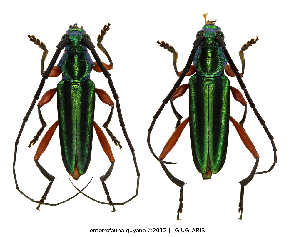 Accueil / Classification organisée et hiérarchisée. / CERAMBYCIDAE Latreille, 1802 / CERAMBYCINAE Latreille, 1802 / CALLICHROMATINI Swainson, 1840 / Mionochroma pseudovittatum (Schwarzer, 1923) ♂ & ♀