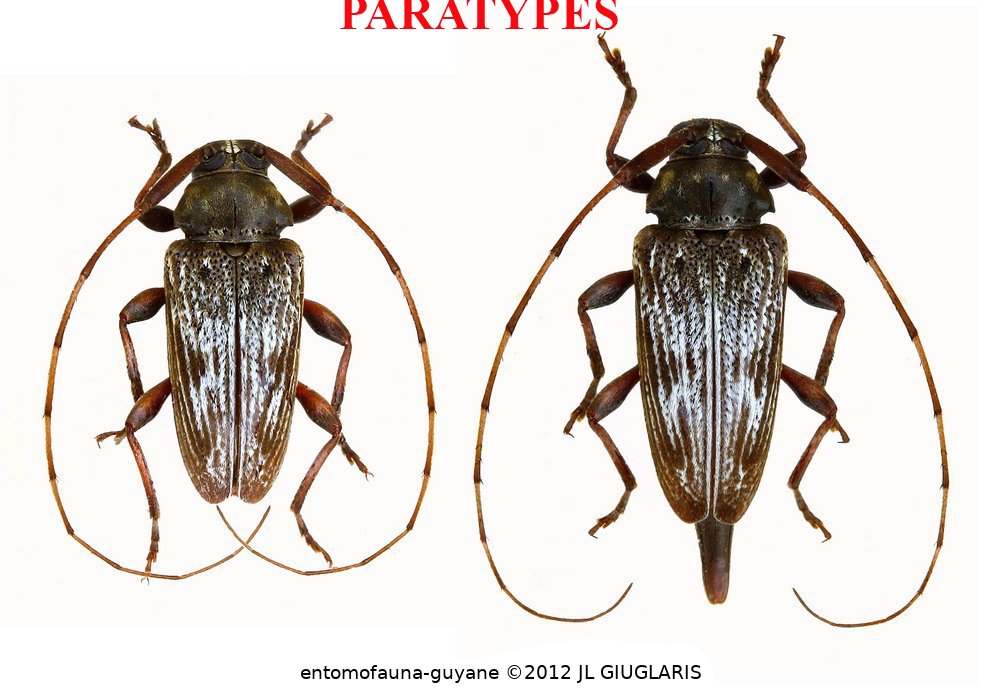 Accueil / Classification organisée et hiérarchisée. / CERAMBYCIDAE Latreille, 1802 / LAMIINAE Latreille, 1825 / ACANTHOCININI Blanchard, 1845 / ACANTHOCININI Blanchard, 1845 / Baryssinus giuglarisi Santos-Silva, Bezark, Audureau, 2025 ♂ & ♀ PARATYPES